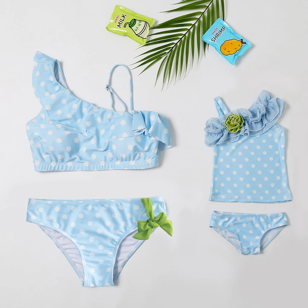 Flash Sale 2020 New Beachwear Mum and Me Bikini Set One shoulder Swimsuit Dot Print for Girl and Women Family
