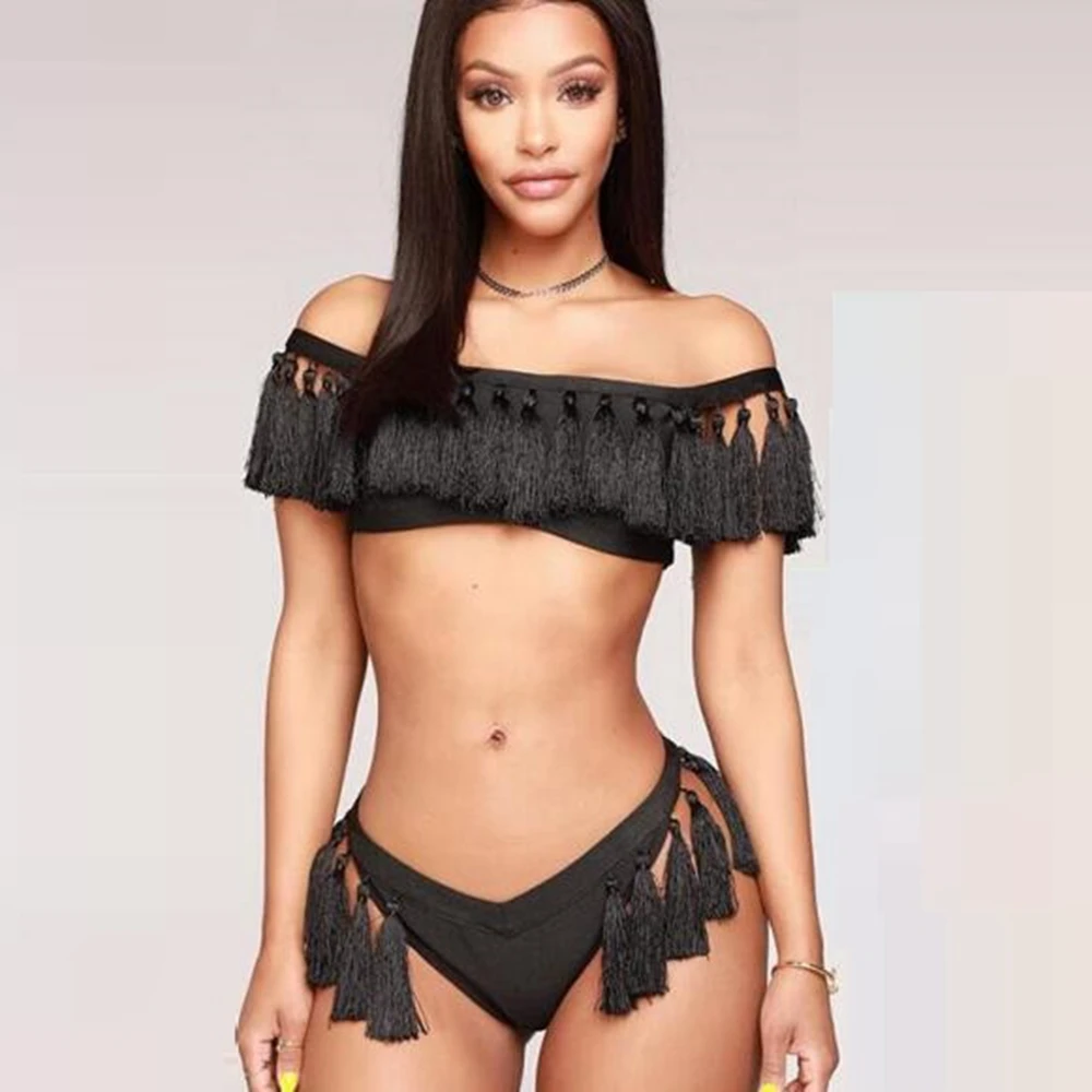 Cheap Women off shoulder bikini tassel fringled bikini tube top swimsuit tassel swimwear women Brazilian