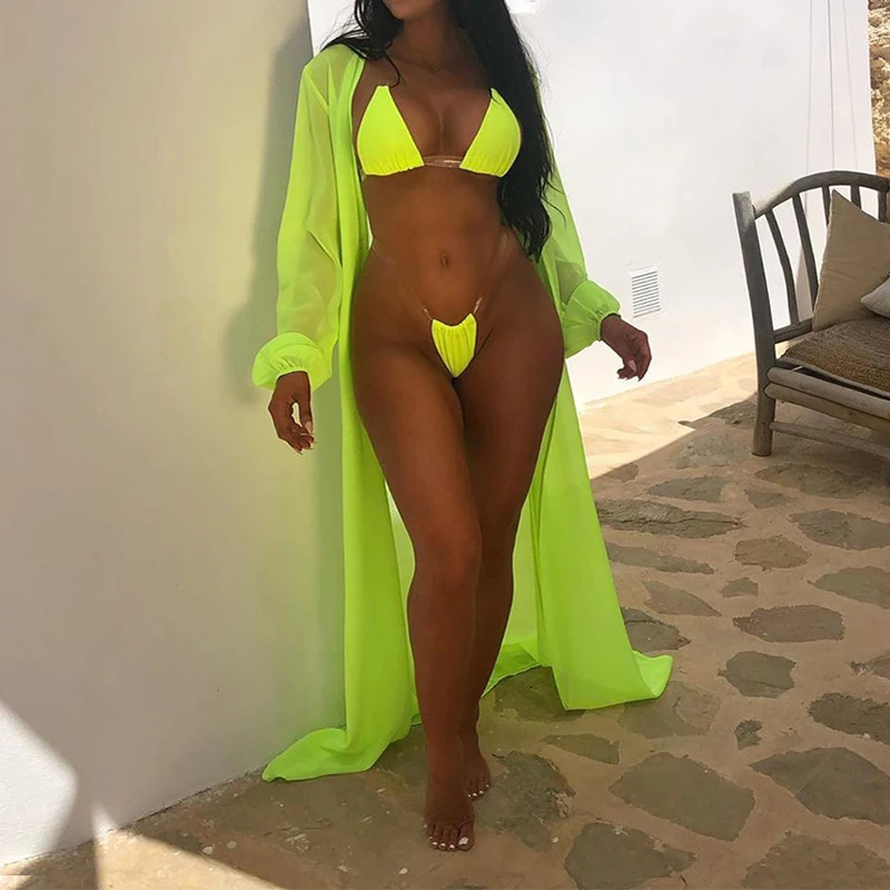 Good Product 2020 New chiffon Cardigan Beach Cover Up with bikini set sexy women swimwear swimsuit bathing suit
